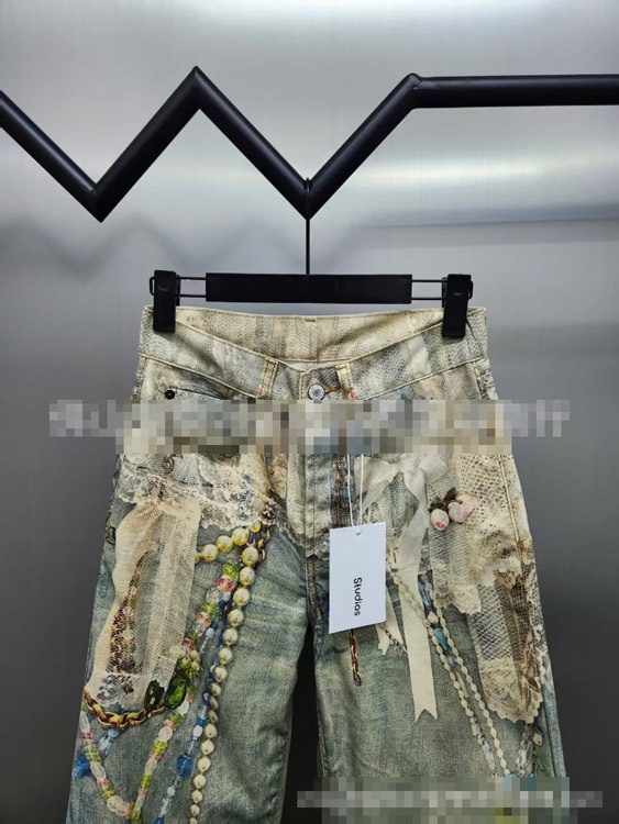 Acne Studios 1981 Series 3D Lace and Pearl Chain High-Waisted Jeans-5458