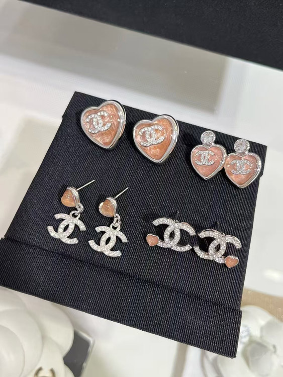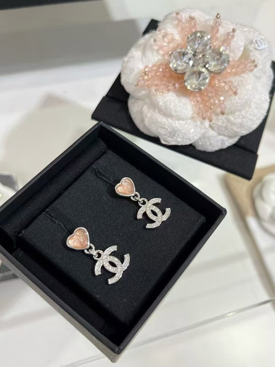 Home > Chanel pink little heart silver full diamond double C earrings-3747