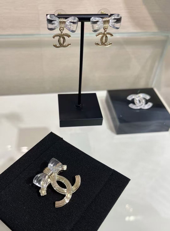 Home > Chanel transparent acrylic bow gold double C brooch-3751