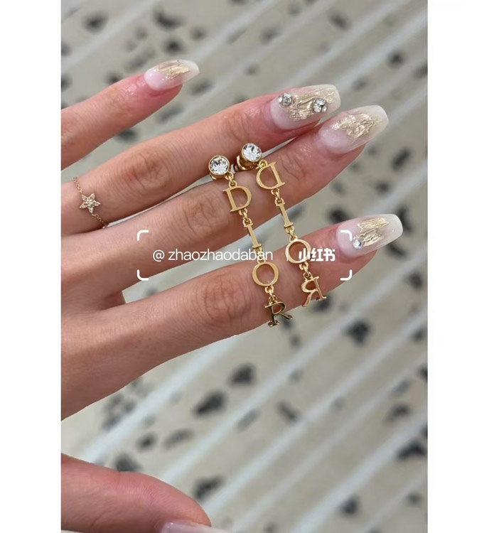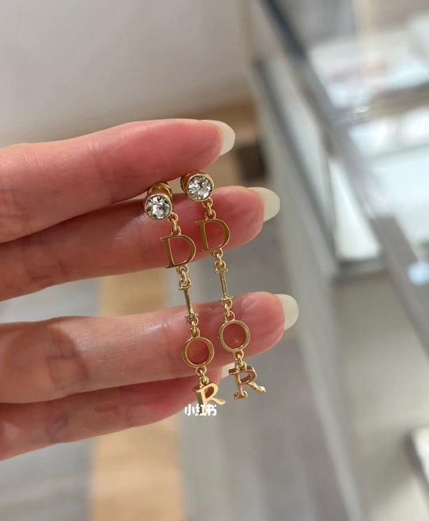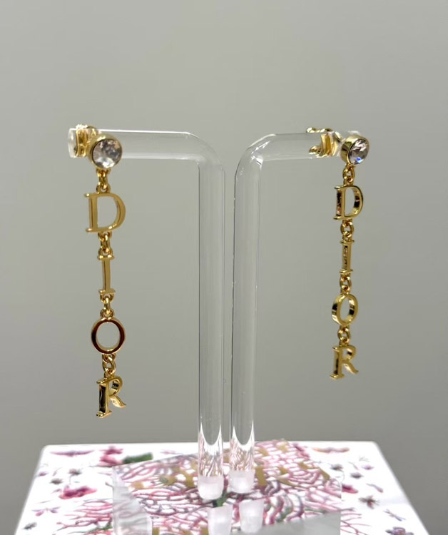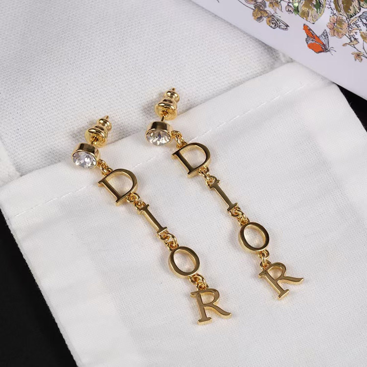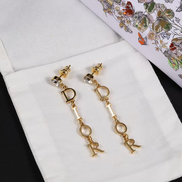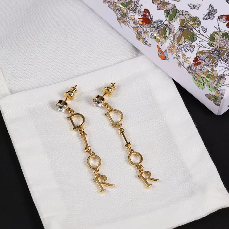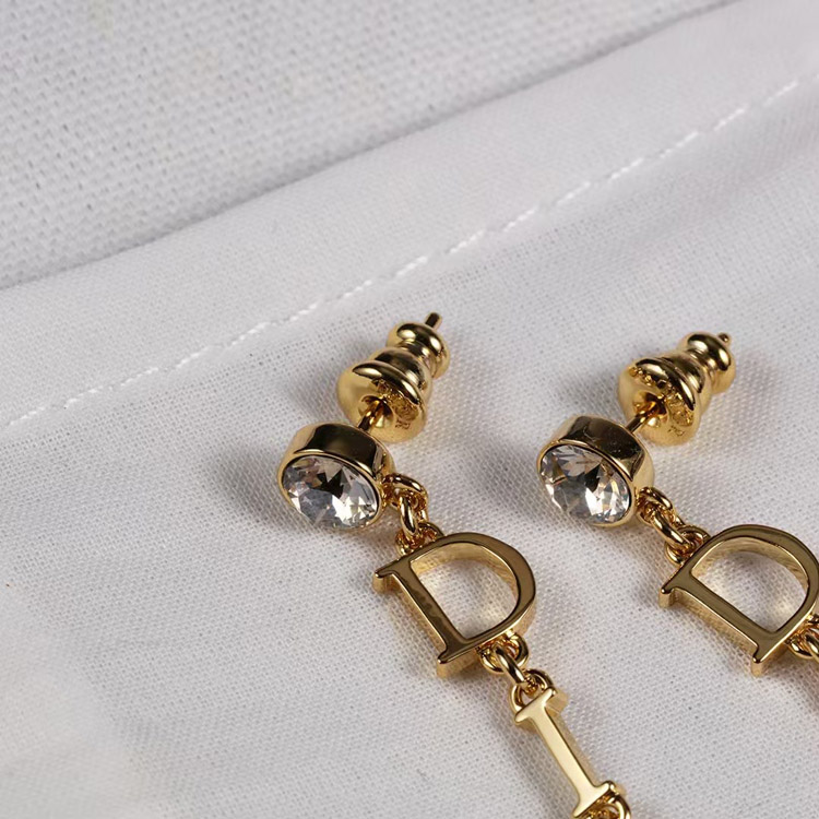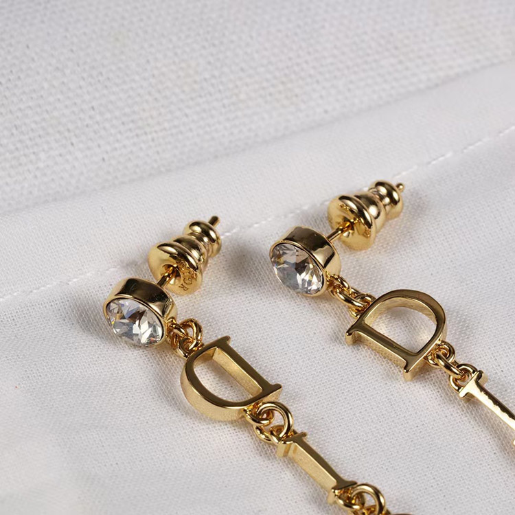 Dior single diamond hanging logo earrings-3708