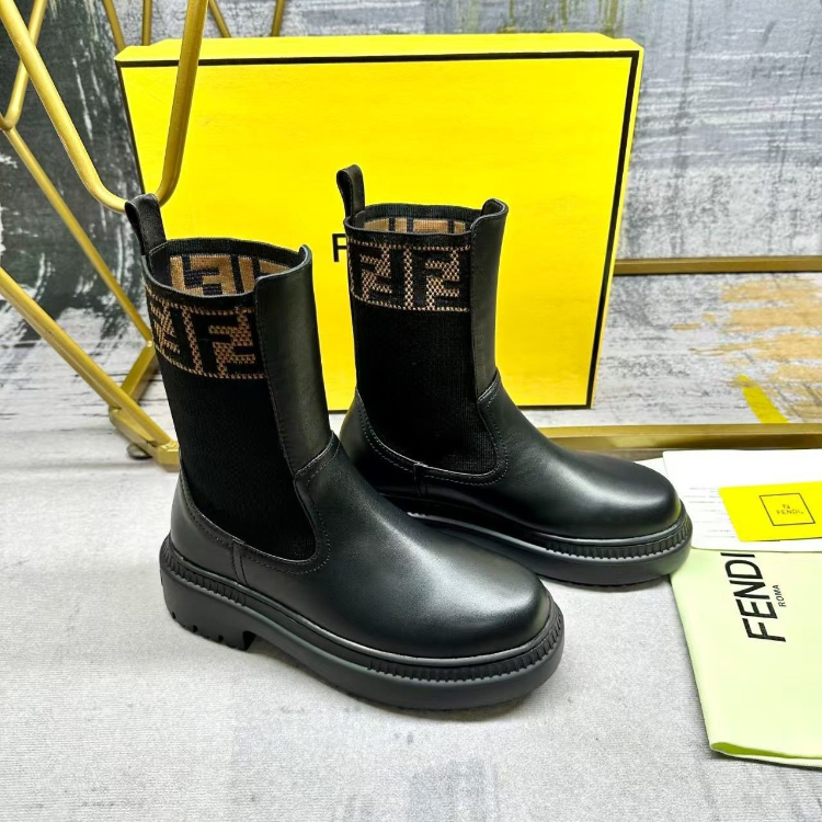 Fendi mid-calf round-toe embroidered letter combat boots-5767