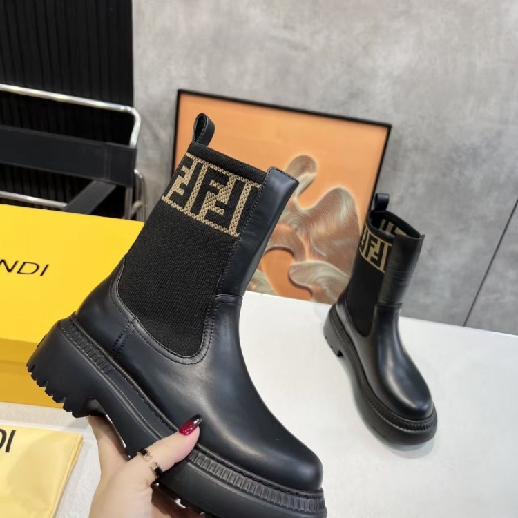 Home > Fendi mid-calf round-toe embroidered letter combat boots-5767