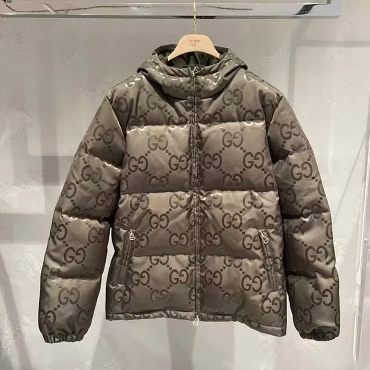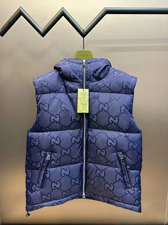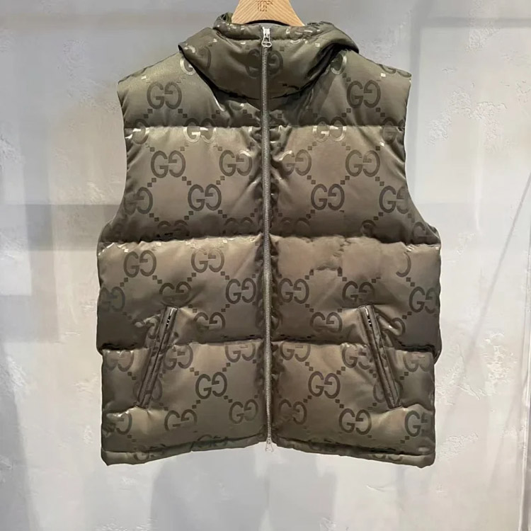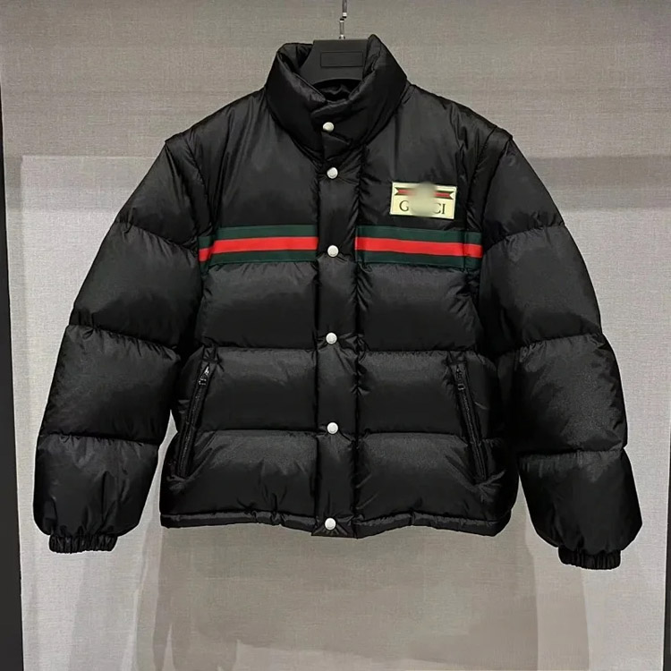 GUCCI Logo label striped webbing quilted detachable sleeves aviator down jacket-4265