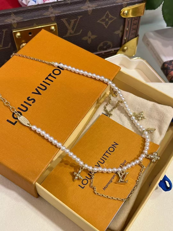 Louis Vuitton LV Gold Letters Old Flower Pearl Necklace-3721