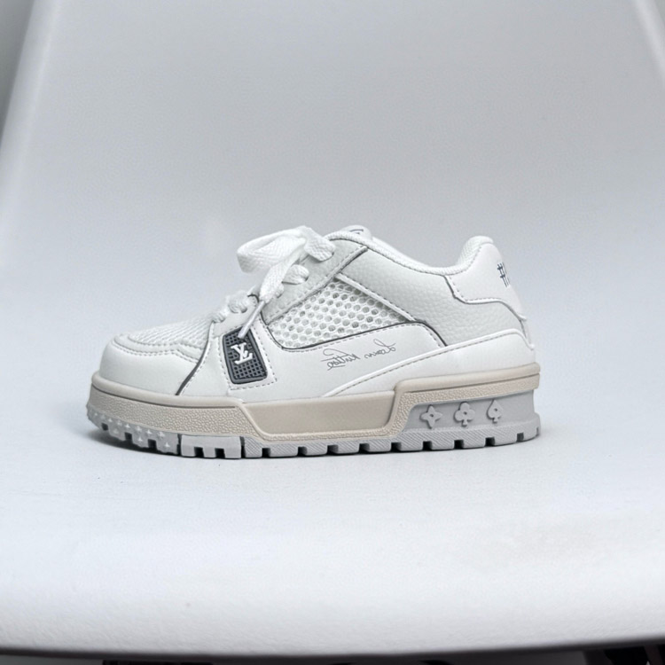 LOUIS VUITTON LV Trainer leather round toe lace-up low-top children's sneakers-4084