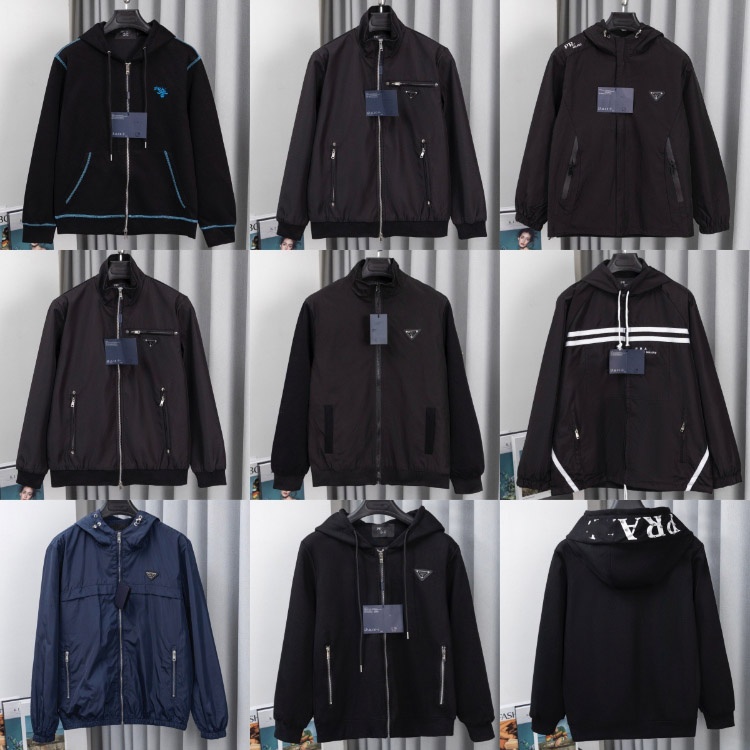Prada new metal triangle logo multi-pocket jacket with zipper closure-5322