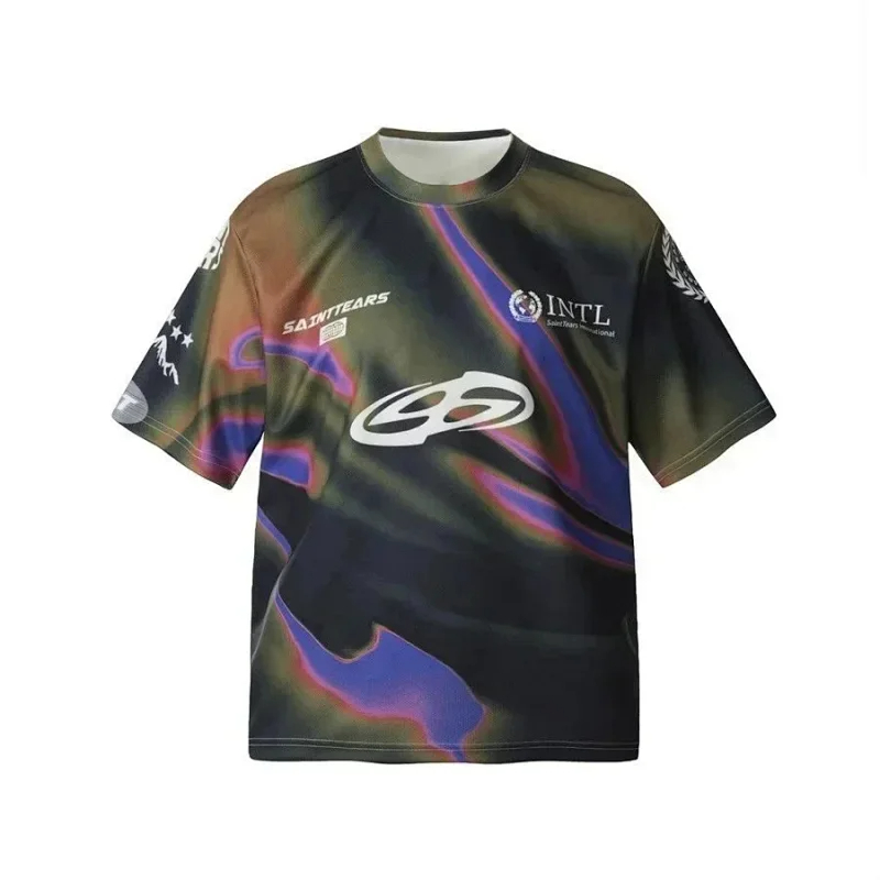 Saint Tears michael retro print bottoming shirt T-shirt loose casual round neck-2806