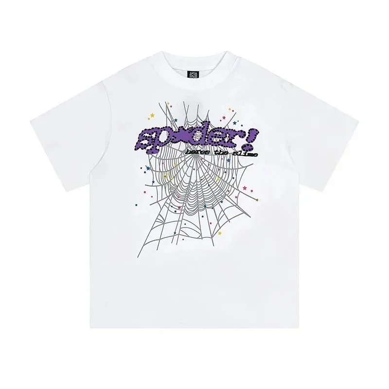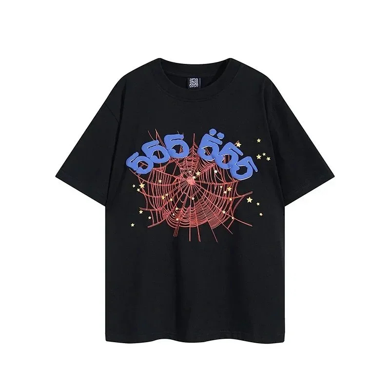 SP5DER Spider Web Foam Print Loose Casual Top T-Shirt-1861