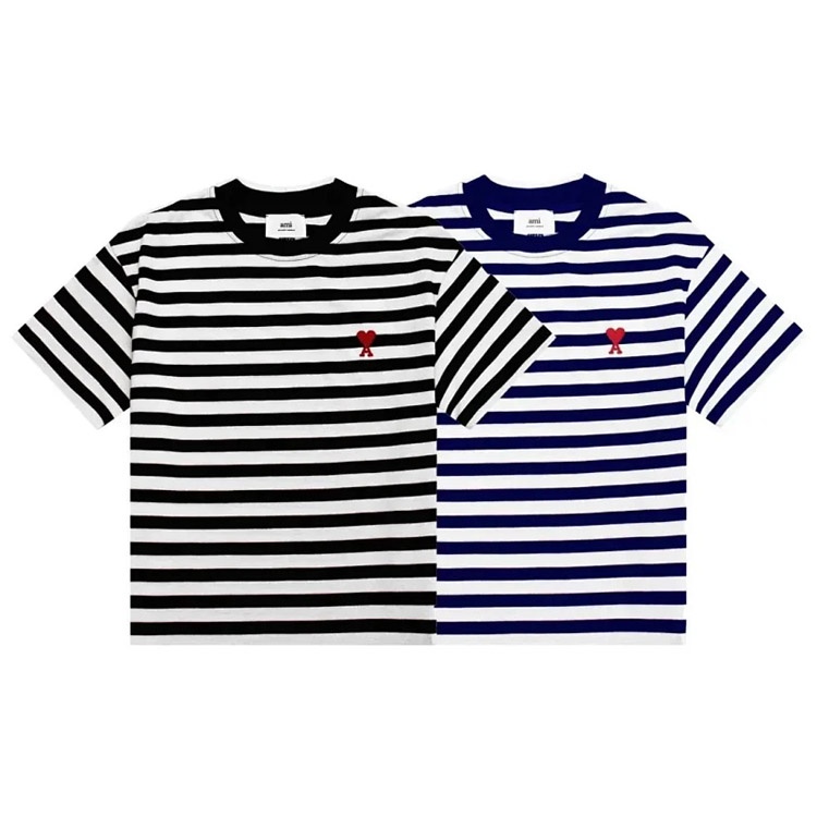 Home > AMIPARIS new collection: striped T-shirt with heart embroidery-5198