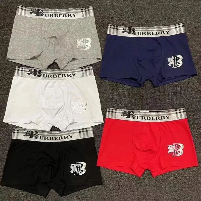 burberry Men's stylish solid color printed large logo breathable boxer briefs Underwear Shorts 3pcs-2419