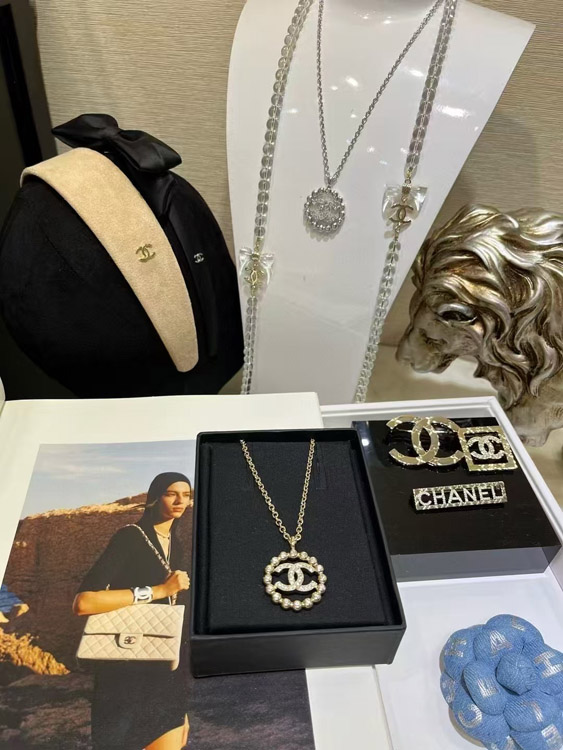 Chanel gold full diamond double C hollow round necklace-3748
