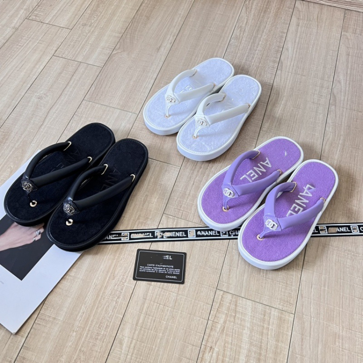 Chanel new terry cloth flat sandals with metal buckle-5710
