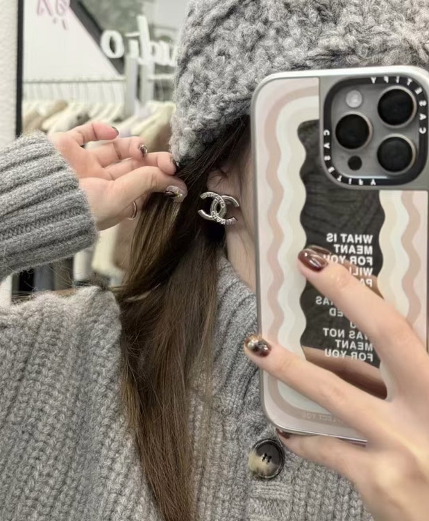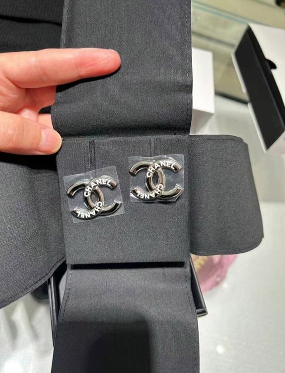 Chanel White Enamel Double C Silver Earrings-3743