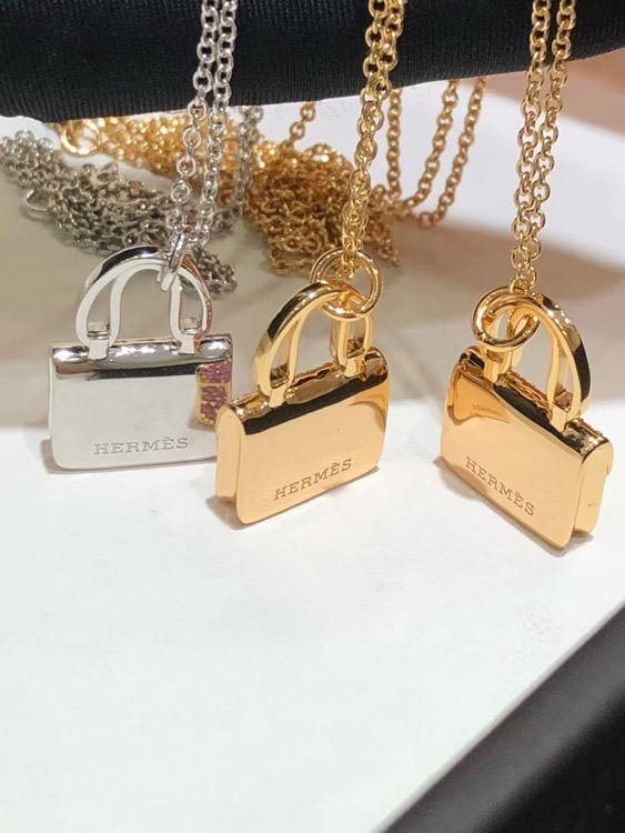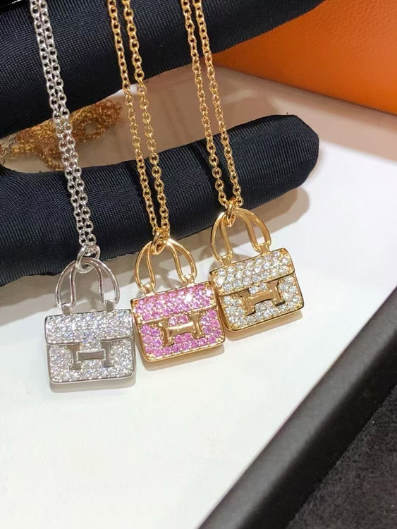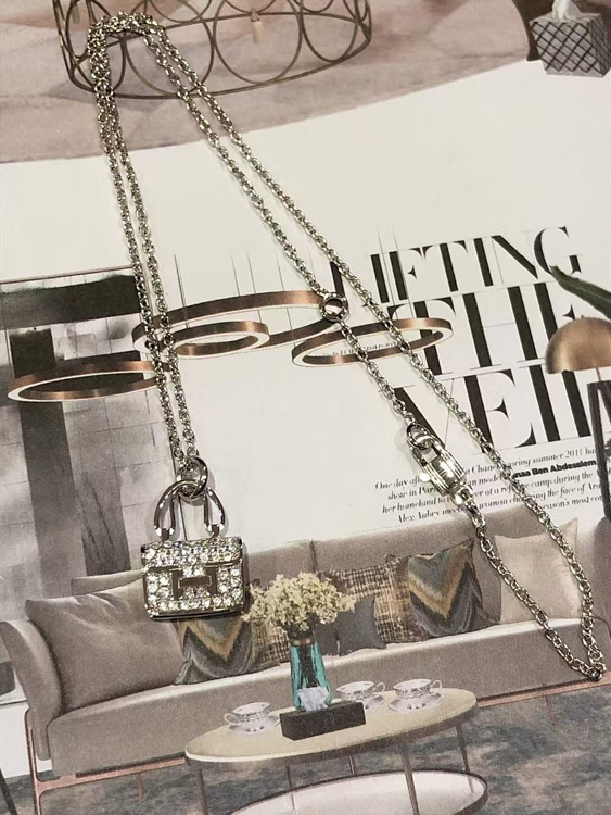 Hermes padlock diamond rose gold pendant chain necklace-3837