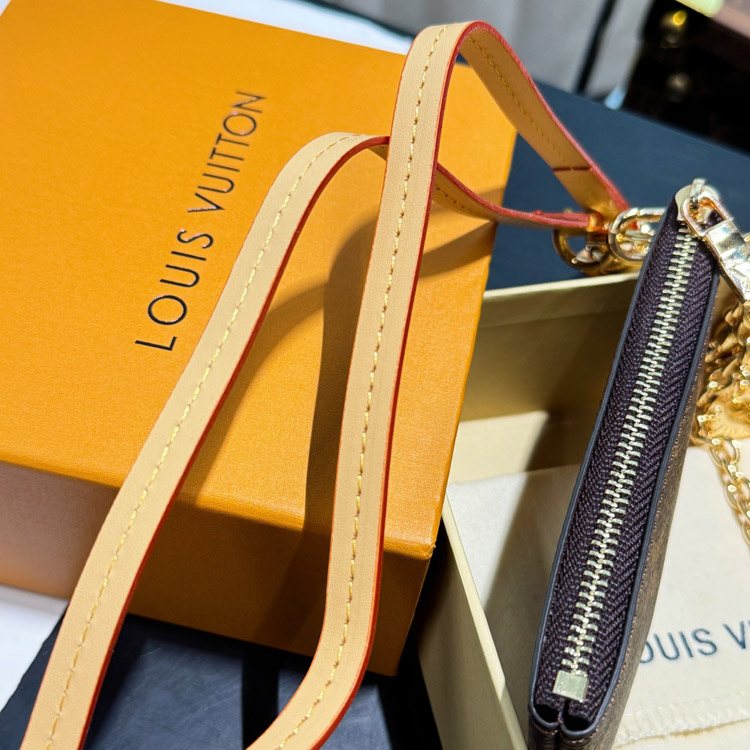 Louis Vuitton LV brown old flower canvas chain key bag zipper coin-4049