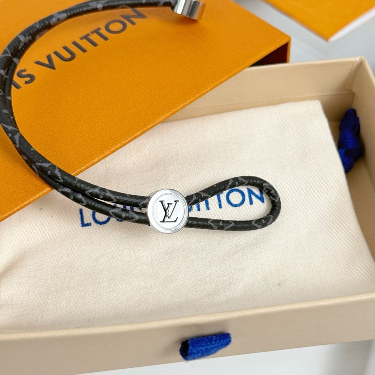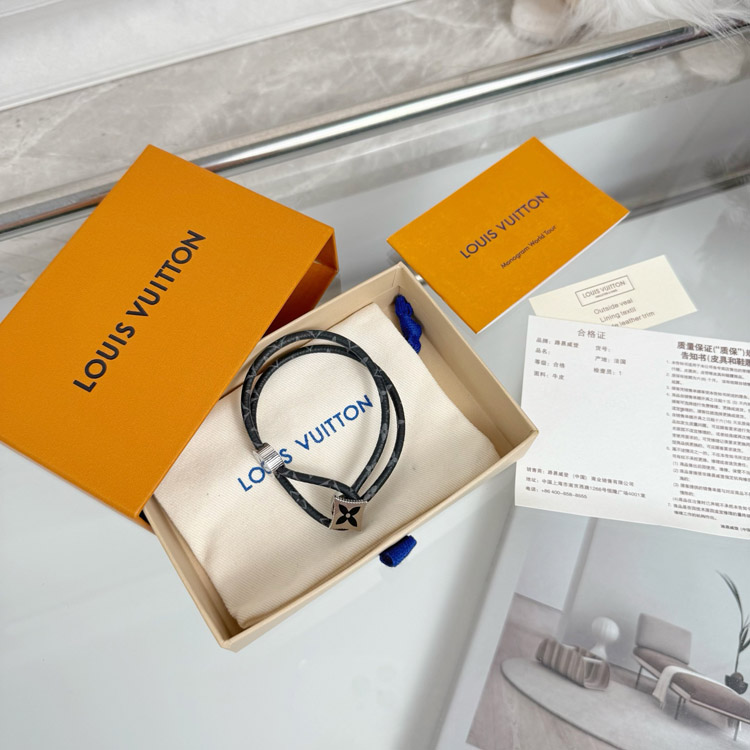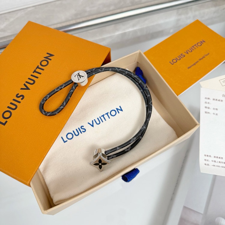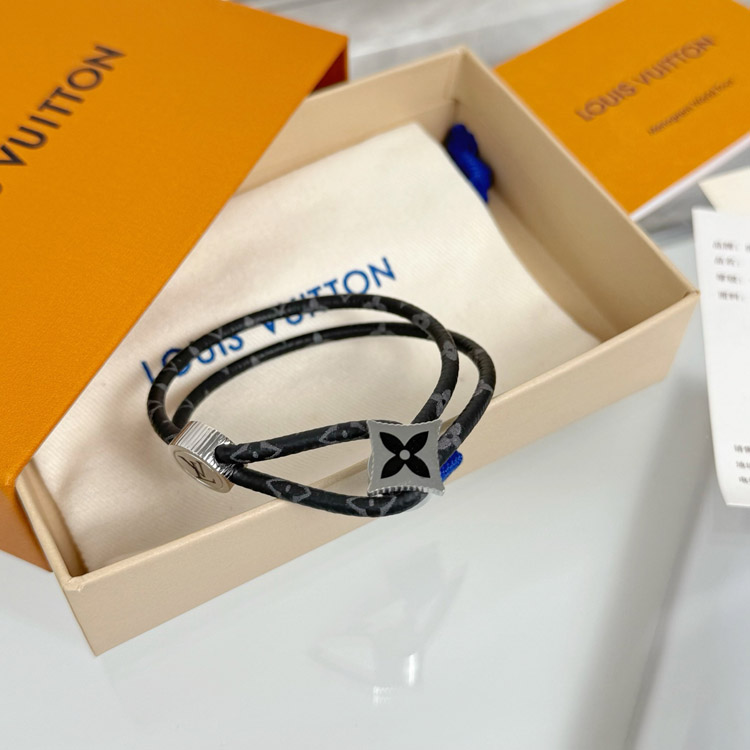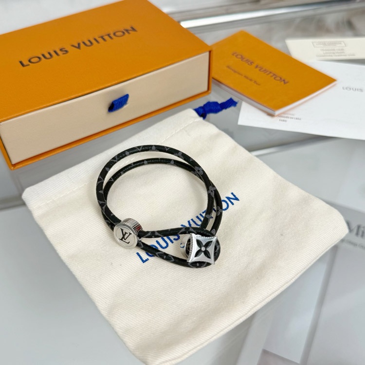 Home > Louis Vuitton LV Letter Floral Black Flower Leather Buckle Bracelet-3640