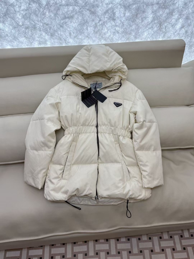 Prada new zip-up hooded down jacket with elastic waist windproof and warm-5353