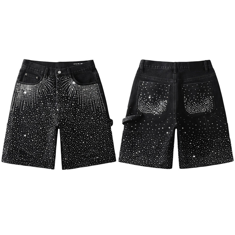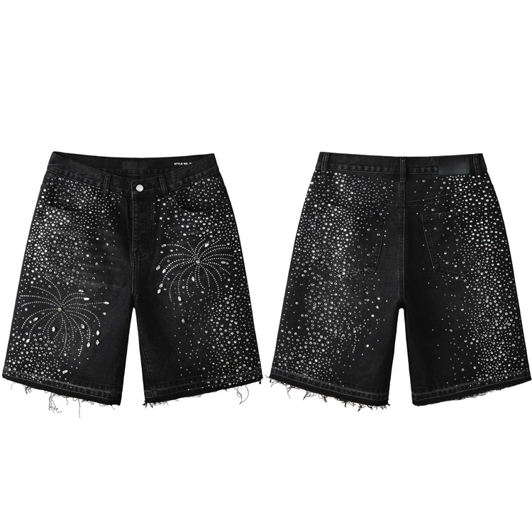 Purple Brand new hot diamond denim retro shorts washed shorts straight-4254