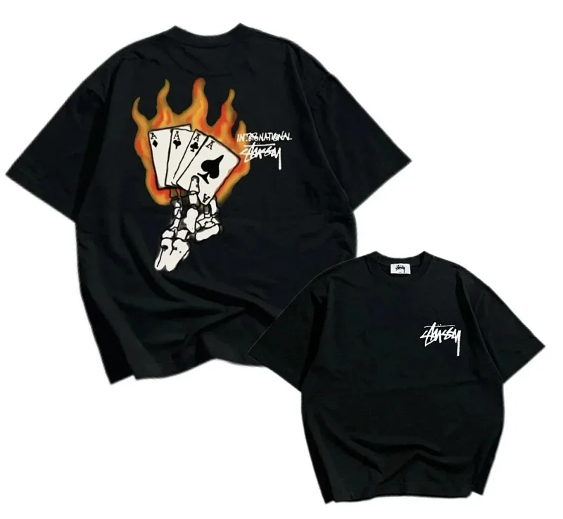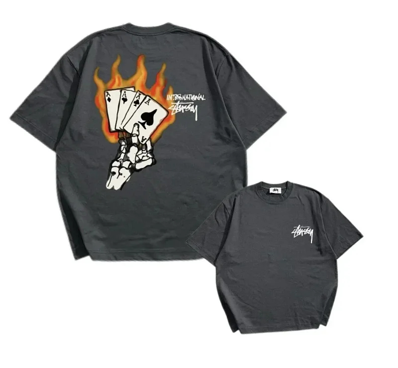 Home > Summer fashion brand Stu creative reverse logo letter pure cotton T-shirt-1846