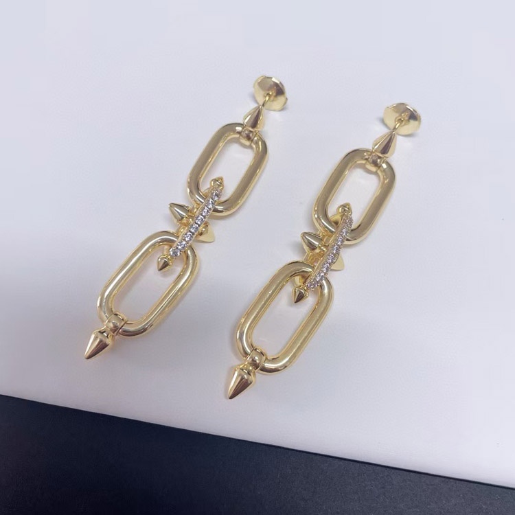 Tiffany diamond double ring chain earrings-4018