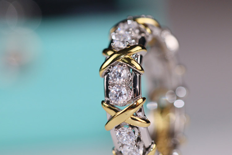 Tiffany full row diamond cross X ring-3675